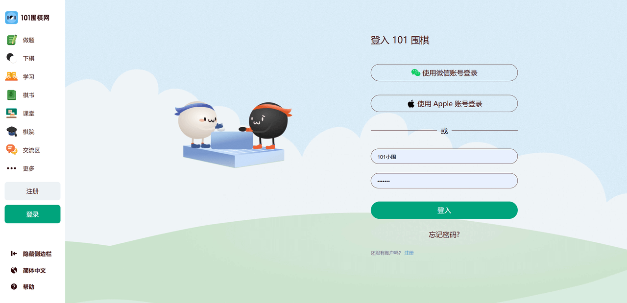 老师给了账号密码,可以用这个账号和密码直接登录101网页版 https://www.101weiqi.com/